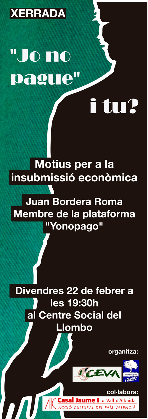 Motius per a la insubmissió econòmica. Amb la intervenció de Juan Bordera Roma, membre de la Plataforma “Yo no pago”.