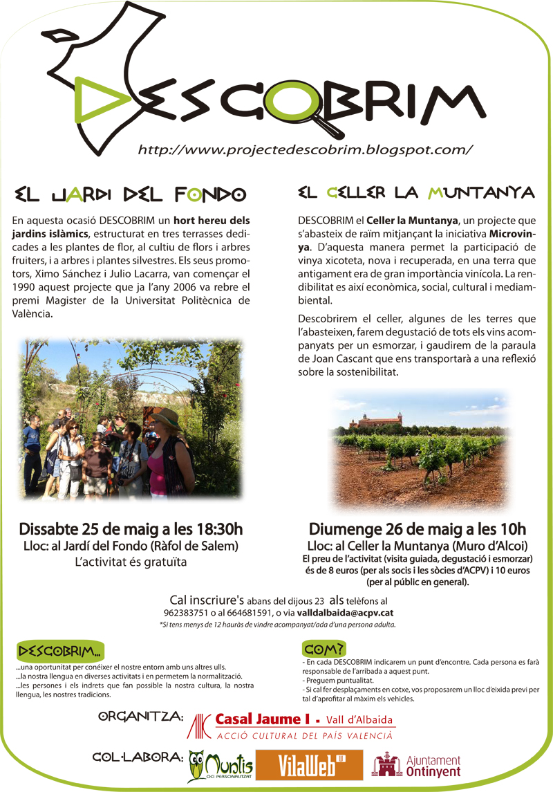 DESCOBRIM EL JARDÍ DEL FONDO Dissabte 25 de maig a les 18:30h al Jardí del Fondo (Ràfol de Salem)