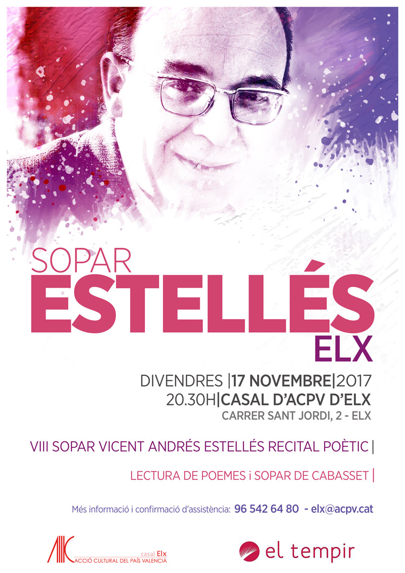 El Casal d’ACPV d’Elx i El Tempir com cada any, i ja en van 7, s’afegeixen a l’homenatge que des de diverses poblacions valencians es realitza al poeta valencià més estimat i destacat del segle XX, Vicent Andrés Estellés.