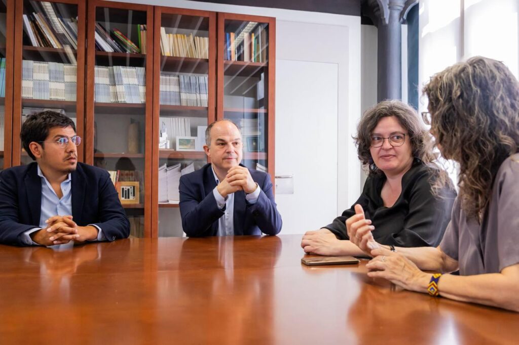 Jordi Turull, secretari general de Junts per Catalunya i Aleix Sarri, encarregat de relacions internacionals i Països Catalans del partit, han visitat Acció Cultural del País Valencià per mantindre una reunió sobre el present i futur de la llengua catalana al territori. La presidenta Anna Oliver i la secretària Anna Gascón han representat l’entitat en aquest encontre, que es va produir dijous 22 de maig, i que ha servit per a teixir aliances, compartir inquietuds i fer propostes quant a la llengua i la cultura.