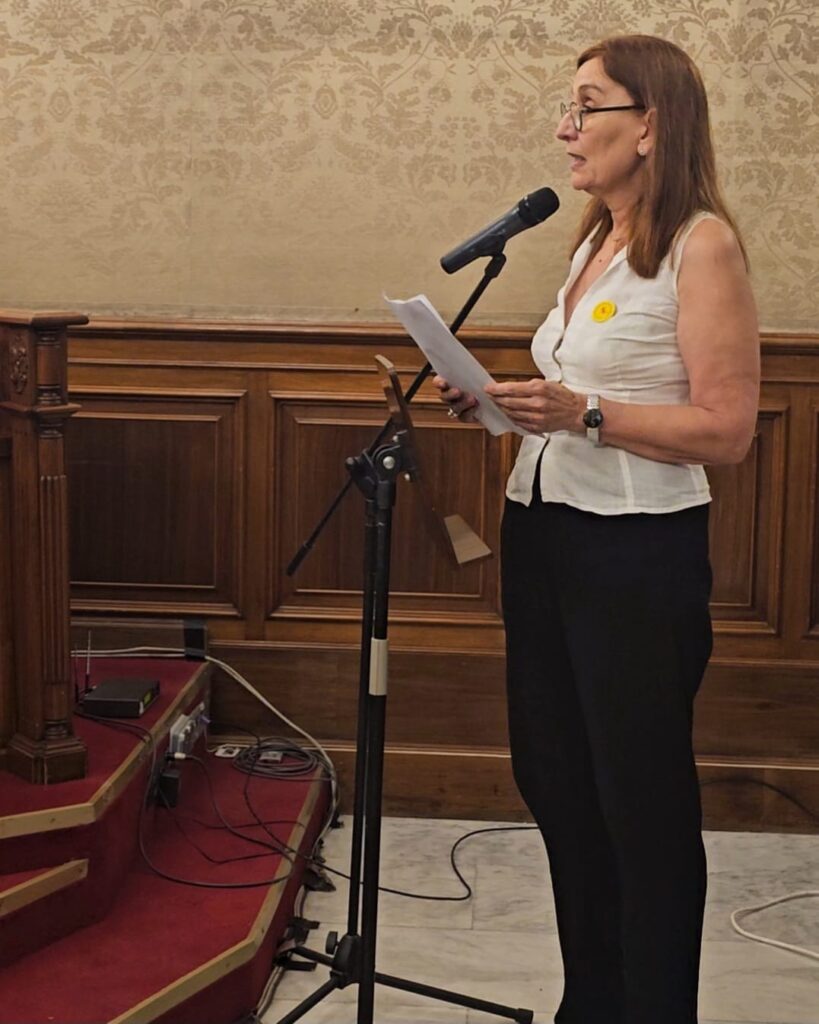 La vicepresidenta d’ACPV ha mostrat que la nostra realitat no és una realitat conflictiva “d’arraconament i persecució”, tal com s’esmenta en la proposició. Així mateix, assenyala que més de quaranta anys d’ensenyament en valencià, ha permés donar les ferramentes escaients perquè la població siga capaç d’entendre les dues llengües i, ara, “silenciar una part de la població, la valencianoparlant, i privar l’altra del dret a entendre i apreciar la llengua històrica de la ciutat i la seua cultura és una acció innecessària i hostil”.