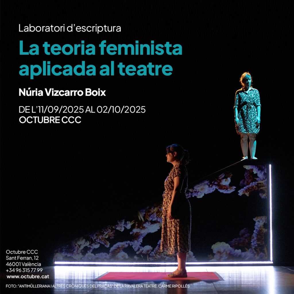 Tots els dijous, des de l’11 de setembre al 2 d’octubre, gaudeix del laboratori d’escriptura “La teoria feminista aplicada al teatre”, impartit per Núria Vizcarro Boix, a l’Octubre CCC. Les sessions versen sobre la introducció a l’escriptura teatral i investigació al voltant de l’aplicació dels principis de la teoria feminista per pensar i escriure una peça teatral.