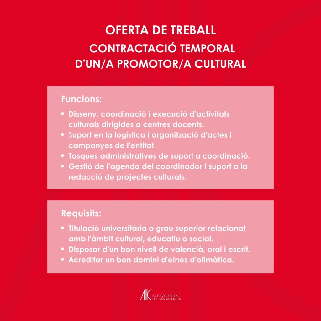 Oferta de treball temporal per al càrrec de promoció cultural