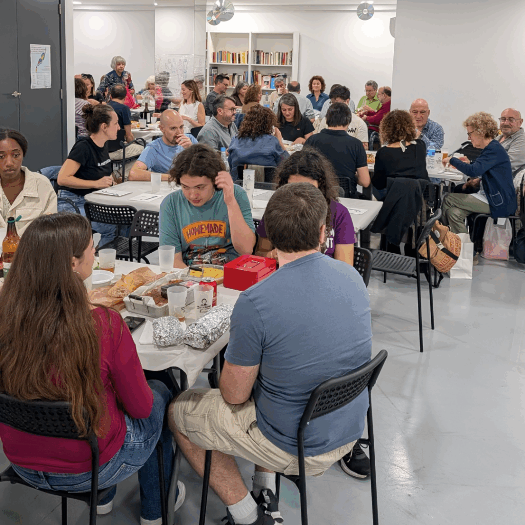 La trobada va començar amb el tradicional sopar de pa i porta, un format senzill però molt estimat que fomenta la convivència i la proximitat entre les persones assistents. L’ambient va ser càlid i participatiu des del primer moment, amb un públic divers que va omplir el recinte de conversa, somriures i expectació per a les activitats que s’havien preparat.