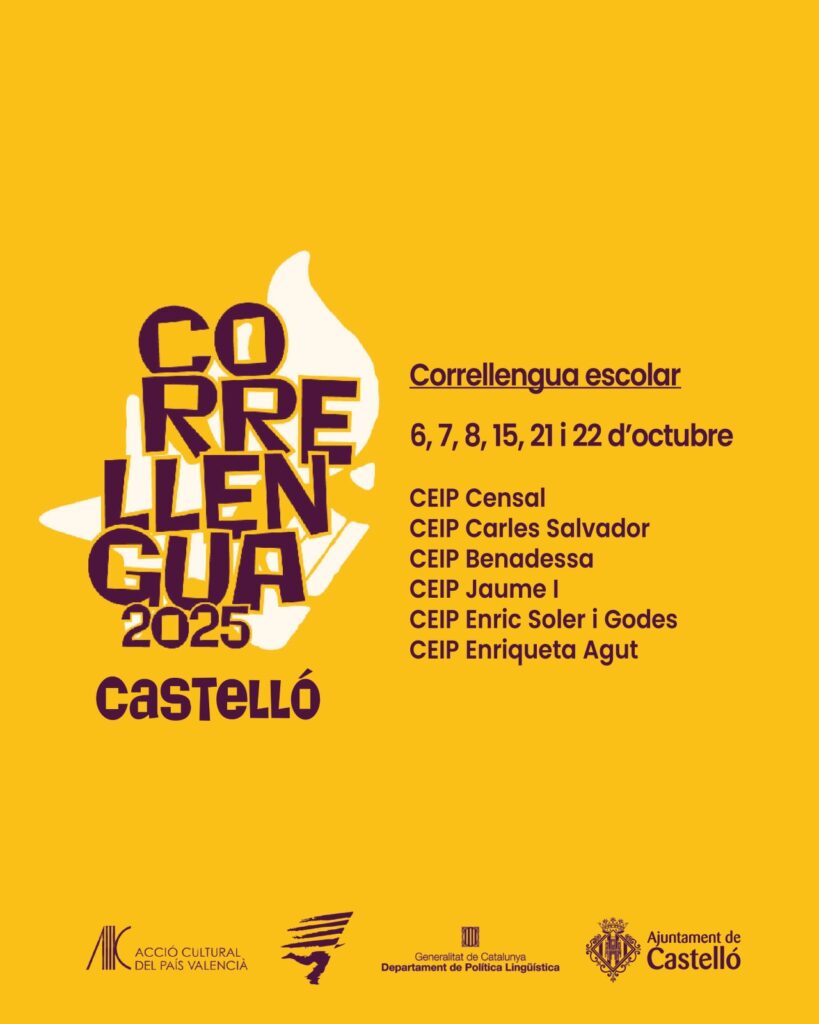 El Correllengua 2025 va arribar un any més a Castelló de la Plana, omplint els patis dels centres educatius de rialles, aprenentatges i activitats lúdiques en valencià. Durant diversos dies del mes d’octubre —els dies 6, 7, 8, 15, 21 i 22—, sis escoles de la ciutat van participar en aquesta iniciativa impulsada per Acció Cultural del País Valencià (ACPV), que busca difondre l’ús social de la llengua i posar en valor la cultura pròpia d’una manera participativa i festiva.