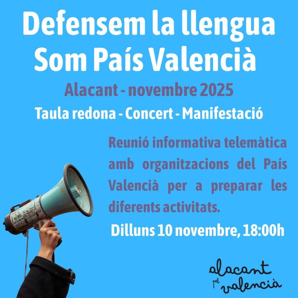 • Diumenge 23, a les 12.00 h – Manifestació a les escales Jorge Juan: Sota el lema «Defensem la llengua. Som País Valencià», la mobilització vol fer visible el compromís d’Alacant amb la llengua i la cultura valenciana.