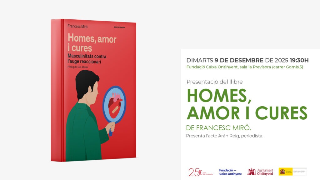 Dimarts 9 de desembre a les 19:30 h, vine a la Fundació Caixa Ontinyent (Sala la Previsora) i descobreix: “Homes, amor i cures. Masculinitats contra l’auge reaccionari” de Francesc Miró. L’acte estarà presentat pel periodista Arán Roig.