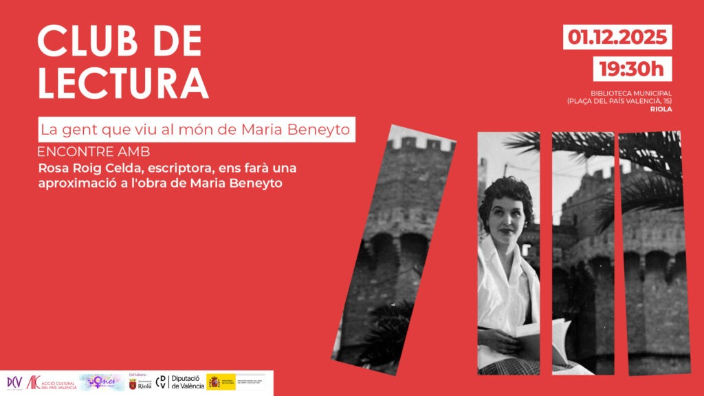 Dilluns 1 de desembre, la Biblioteca Municipal de Riola va acollir l’acte de cloenda de la lectura La gent que viu al món de Maria Beneyto, dins dels Clubs de Lectura organitzat per Acció Cultural del País Valencià (ACPV) amb la col·laboració de Dones per la Cultura i l’Esport de Riola. Per a aquesta sessió especial vam comptar amb la presència de l’escriptora Rosa Roig Celda, que ens va endinsar en l’univers literari d’una de les veus més destacades de la nostra cultura.