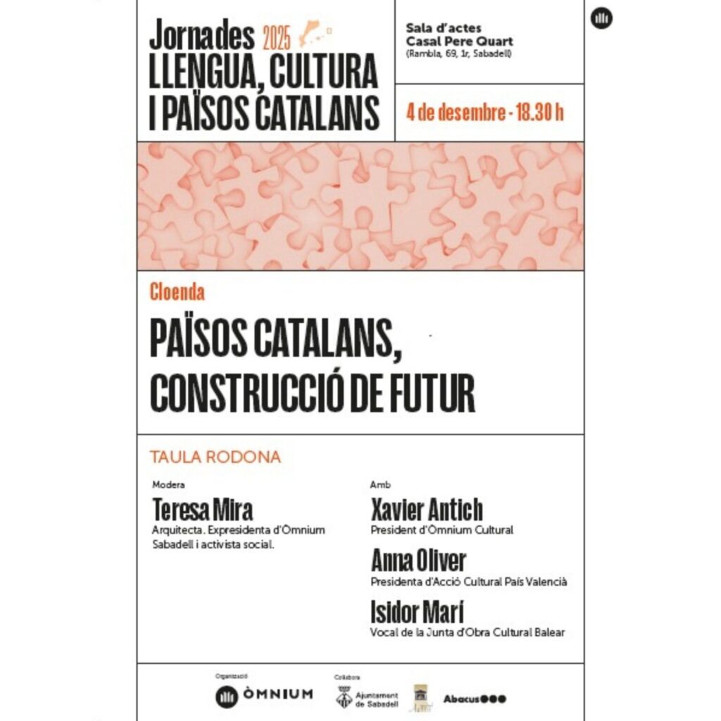 L’acte, sota el títol “Països Catalans, construcció de futur”, va reunir diverses veus de referència del món cultural. La moderació va ser a càrrec de Teresa Mira, arquitecta, expresidenta d’Òmnium Sabadell i activista social, que va introduir el debat destacant la necessitat de reforçar els vincles culturals i lingüístics per damunt de les fronteres administratives.