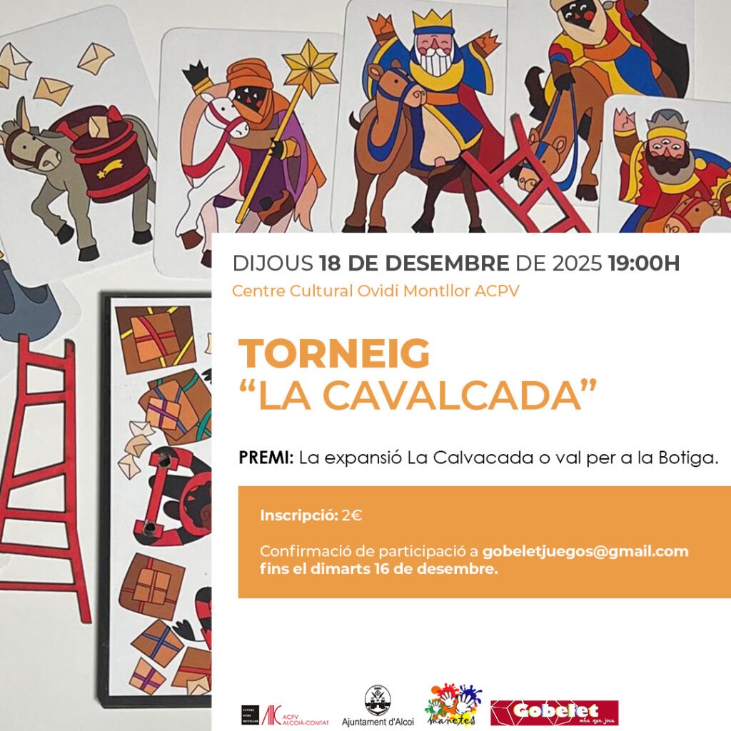 El Centre Ovidi Montllor acull el torneig del joc “La Cavalcada”, inspirat en la cavalcada més antiga de l’Estat. Aquest joc, creat per Andreu Alcaraz, consisteix a aconseguir portar a temps i en una sola nit tots els paquets i regals a les famílies que han escrit la carta i on els protagonistes són els personatges del Nadal alcoià.