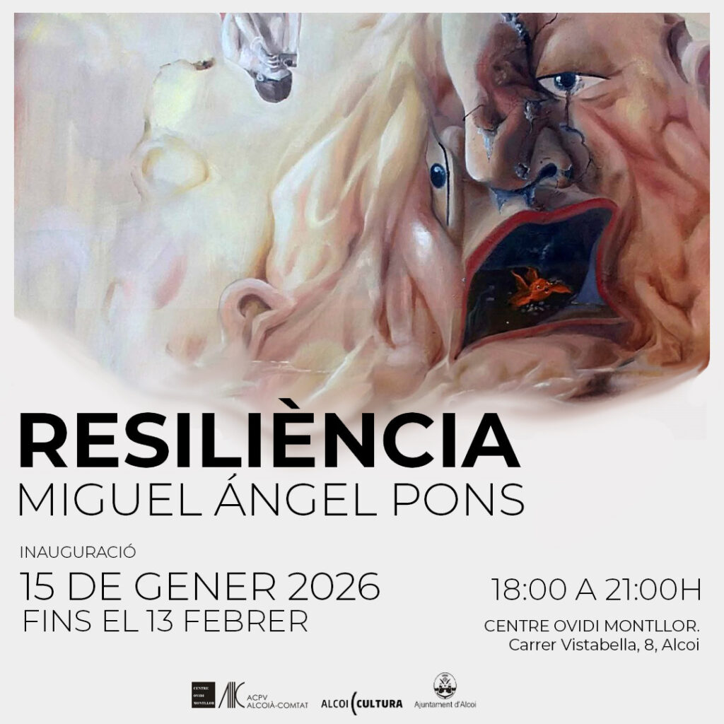El Centre Ovidi Montllor enceta l’any 2026 amb la inauguració de l’exposició “Resiliència”, de Miguel Ángel Pons. L’acte tindrà lloc el 15 de gener a la Sala Polivalent del Centre Ovidi Montllor.