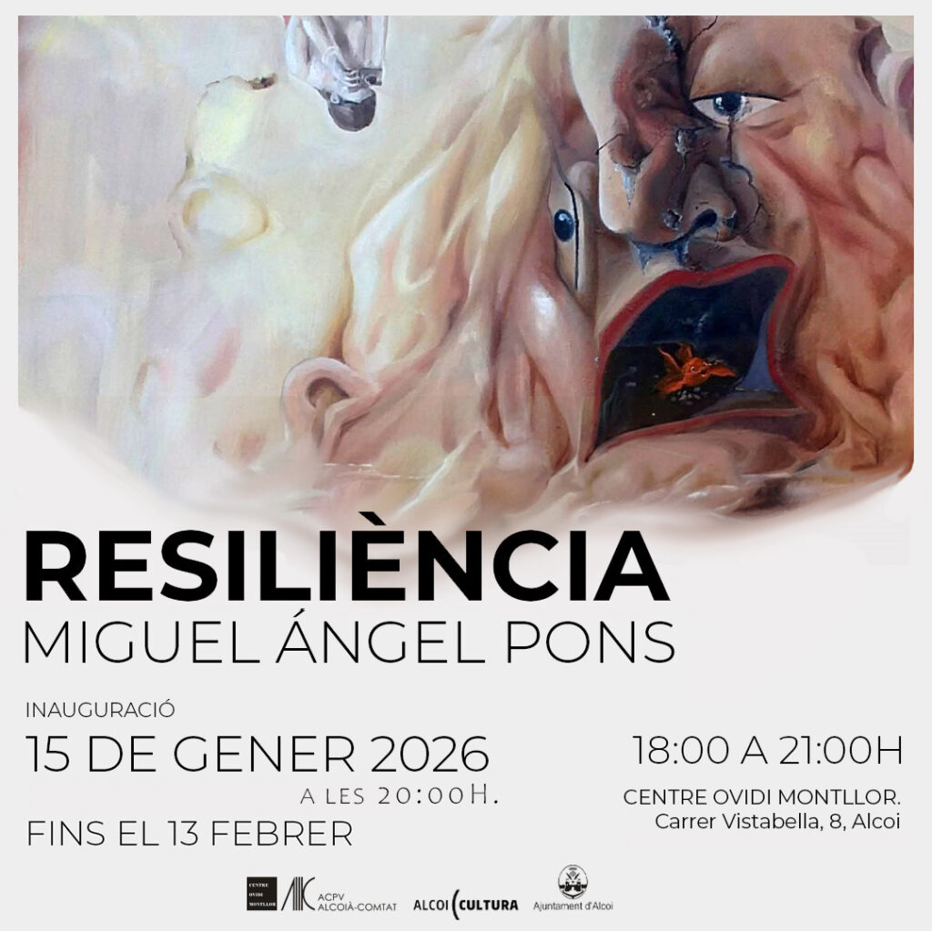 El Centre Ovidi Montllor enceta l’any 2026 amb la inauguració de l’exposició, “Resiliència” de Miguel Ángel Pons. La mostra obri al públic el pròxim 15 de gener, a la Sala Polivalent del centre.