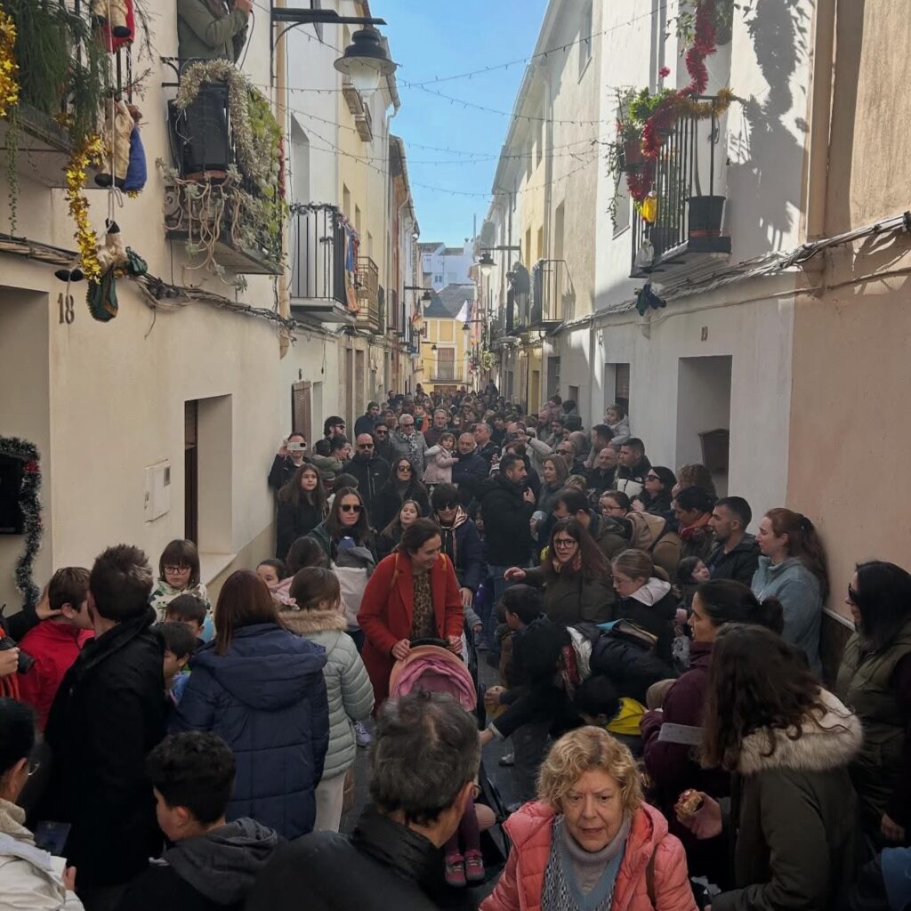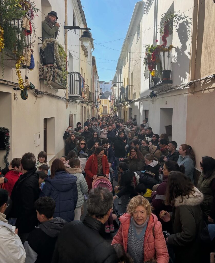 Enguany, les pistes ens van portar fins al barri del Poble Nou, on alguns veïns asseguraven haver-lo vist passejant pels seus carrers. Amb esta notícia, les esperances es van encendre i, com cada any, ens vam posar en marxa per trobar-lo. La cercavila, animada per la música de les xirimites i tabals del grup El Regall, va recórrer els racons del barri, omplint-los de festa i alegria.