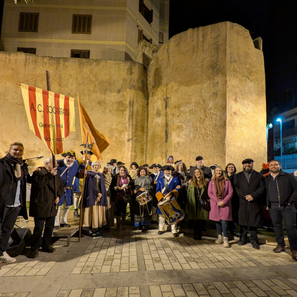La comitiva va iniciar el seu recorregut a la seu de l’Associació Cultural Socarrats, al carrer Sarthou, seguint l’itinerari tradicional pels carrers del nucli urbà fins arribar a la torre Motxa. Durant el trajecte, nombroses persones es van sumar a la marxa, que va transcórrer en un ambient solemne i respectuós, amb la participació d’entitats cíviques i col·lectius compromesos amb la defensa de la història i la identitat del poble valencià.