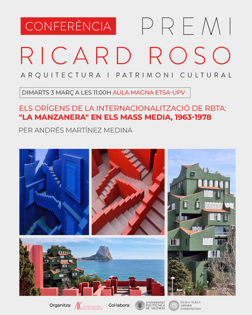 Acció Cultural del País Valencià, amb la col·laboració de la Universitat Politècnica de València i l’Escola Tècnica Superior d’Arquitectura, organitza dimarts 3 de març una jornada vinculada als Premis Ricard Roso que s’iniciarà amb la conferència: