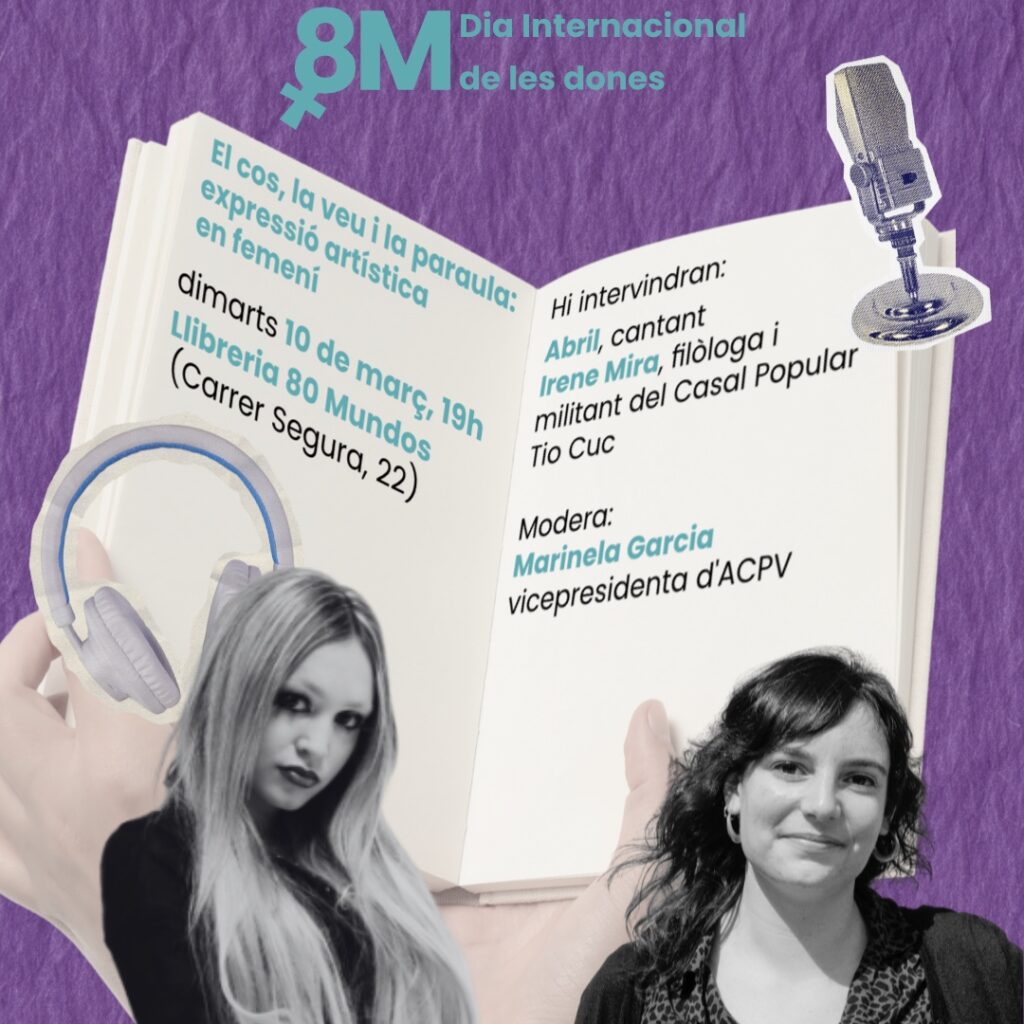 La conversa entre totes dues vol obrir un espai de reflexió sobre la pluralitat de l’expressió artística en femení i sobre la necessitat de continuar generant contextos on les dones puguen crear, pensar i compartir amb llibertat. En el marc del 8 de març, aquesta proposta cultural reivindica la importància de reconéixer i posar en valor les aportacions de les creadores, tant en l’àmbit musical com en el literari i acadèmic.