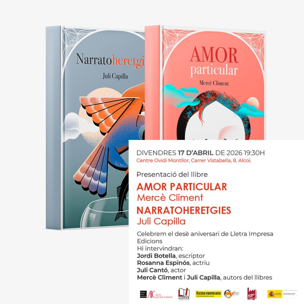 Els dos llibres es presentaran en un acte que servirà també per celebrar el desé aniversari de Lletra Impresa Edicions. Hi intervindran Jordi Botella (escriptor), Rosanna Espinós (actriu), Juli Cantó (actor) i els mateixos Mercè Climent i Juli Capilla, autors de les obres.