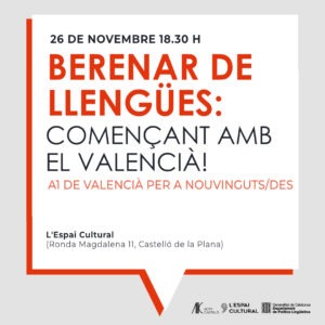 A1 de valencià per a nouvinguts/des a L’Espai Cultural A Castelló tenim la sort de…