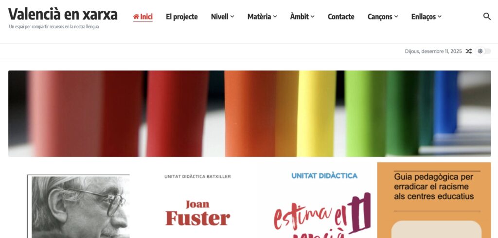 Valencià en xarxa : Una web on compartim recursos en la nostra llengua i els posem a disposició del professorat, i també a altres educadors i educadores de l’educació no formal.