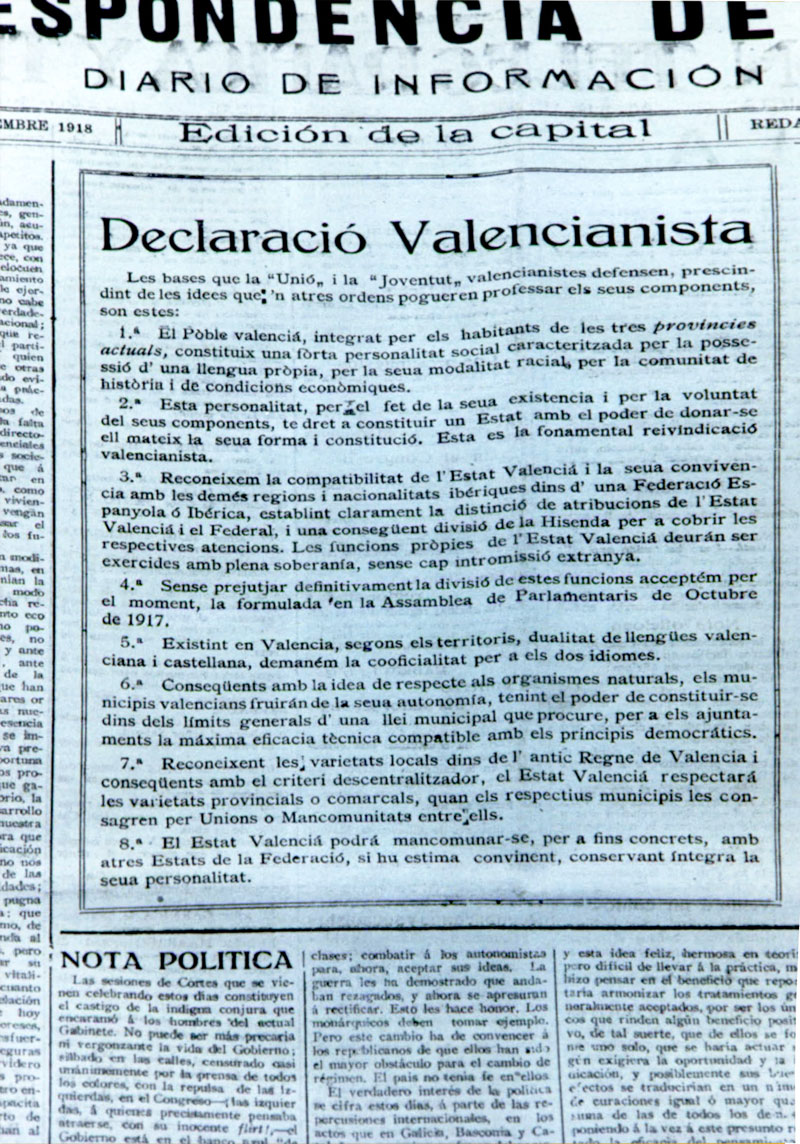 de Valencia amb la Declaració Valencianista (14-11-1918) |